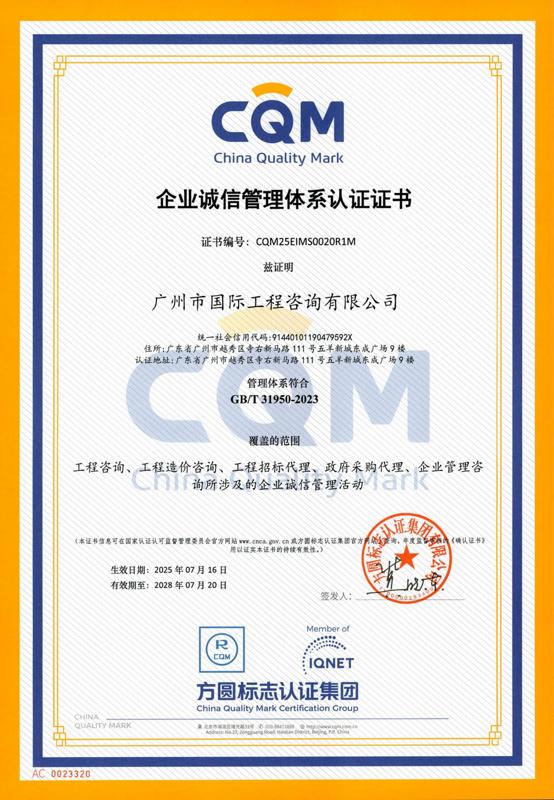 企業(yè)誠(chéng)信管理體系認(rèn)證證書(shū)