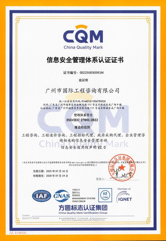 信息安全管理體系認(rèn)證證書(shū)