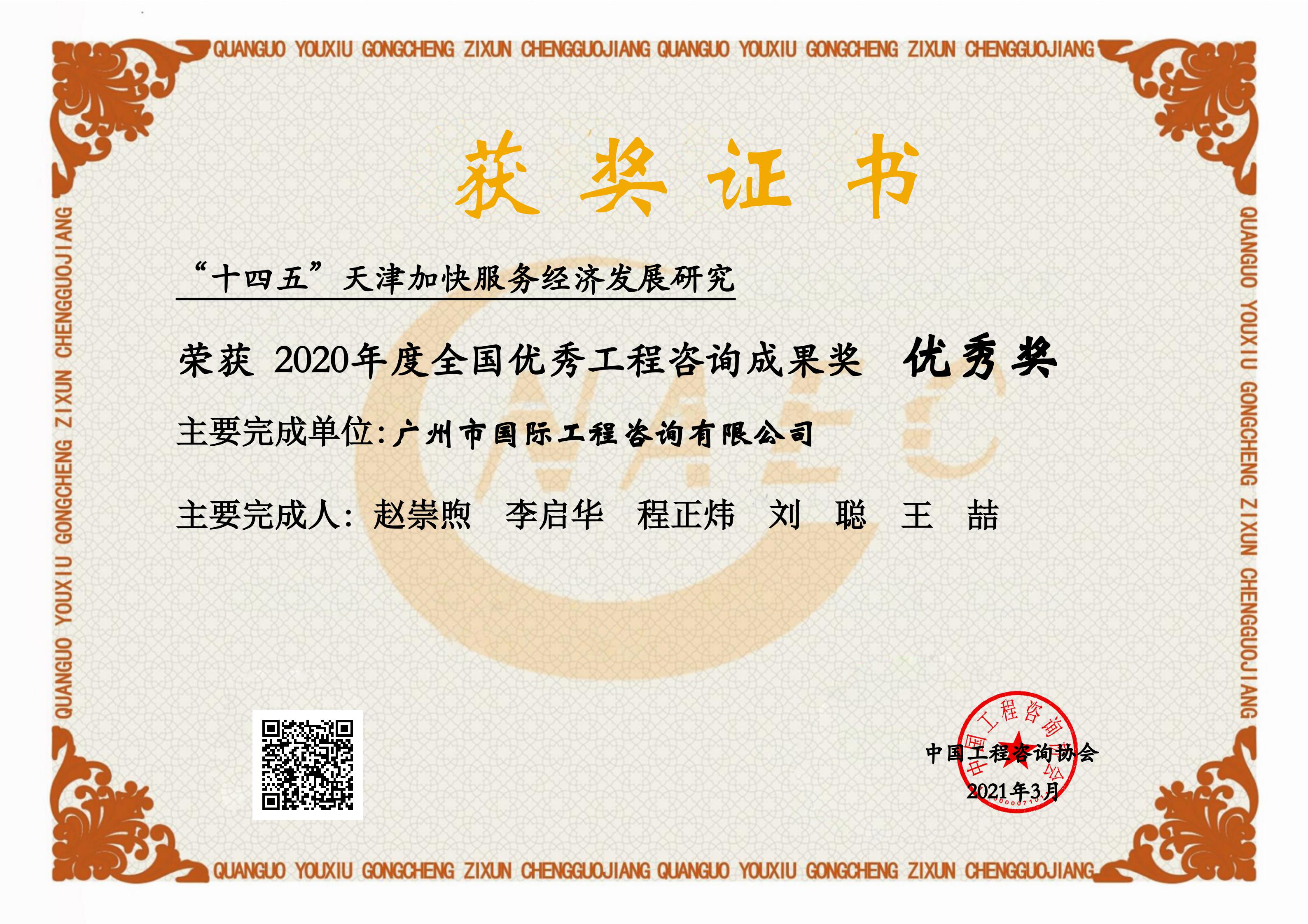 2020年度全國優(yōu)秀工程咨詢成果獎優(yōu)秀獎(“十四五”天津加快服...