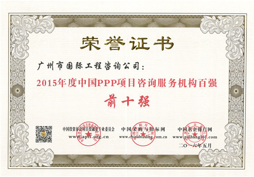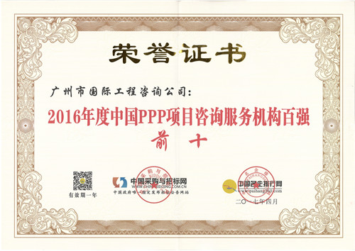 2016年度中國PPP項目咨詢服務(wù)機(jī)構(gòu)十大頂級品...