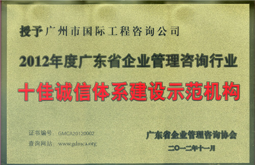 2012年度廣東省企業(yè)管理咨詢行業(yè)十佳誠信體系...