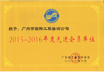 2015-2016年度廣東省工程造價協(xié)會先進會員單...