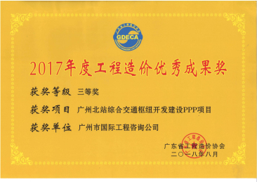 2017年度工程造價優(yōu)秀成果三等獎(廣州北站綜...