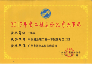 2017年度工程造價優(yōu)秀成果二等獎(車陂涌治理...