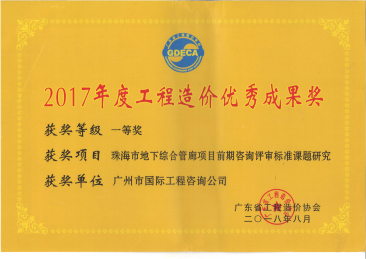2017年度工程造價優(yōu)秀成果一等獎(珠海市地下...