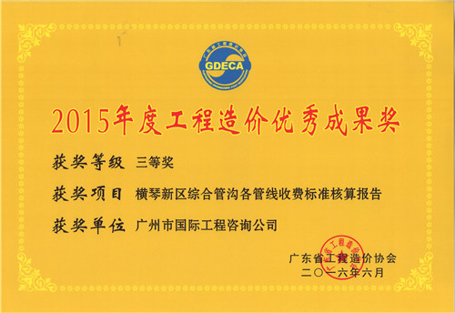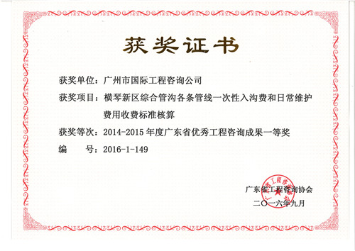《橫琴新區(qū)綜合管溝各管線收費標準核算報告》獲...