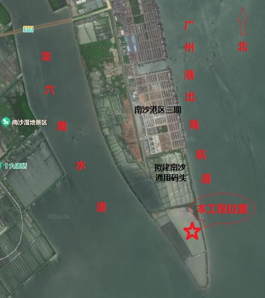 (二)建設(shè)地點:擬建項目位置位于廣州市南沙區(qū)龍穴島島體的南端,建設(shè)用地北側(cè)緊接在建的廣州港南沙港區(qū)國際通用碼頭工程,與已建南沙港區(qū)三期工程距離約1.5km。